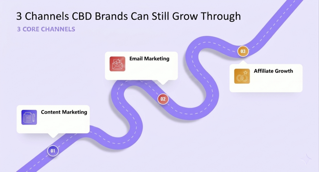 When paid ads stop working well, CBD brands need other ways to get noticed and bring people to their website. That is where SEO, email marketing, and trusted partnerships become useful, especially because of strict CBD marketing restrictions.