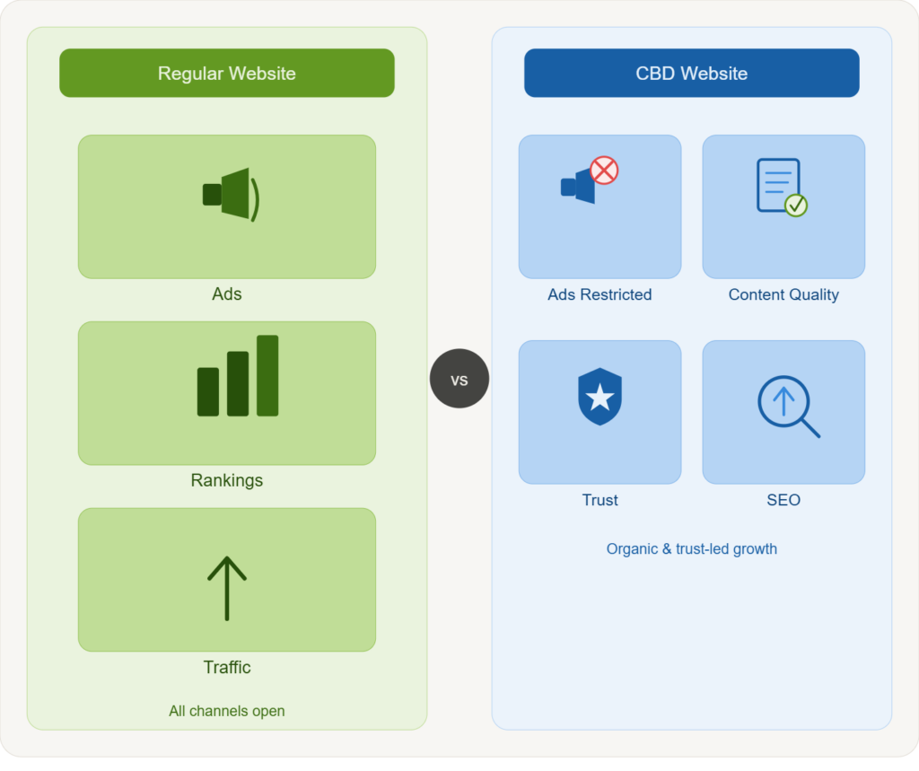 CBD SEO is not the same as standard SEO. The basic SEO rules still apply, but this niche comes with extra limits that many other industries do not face. CBD brands often face stricter ad rules, closer content review, and a greater need to build trust.